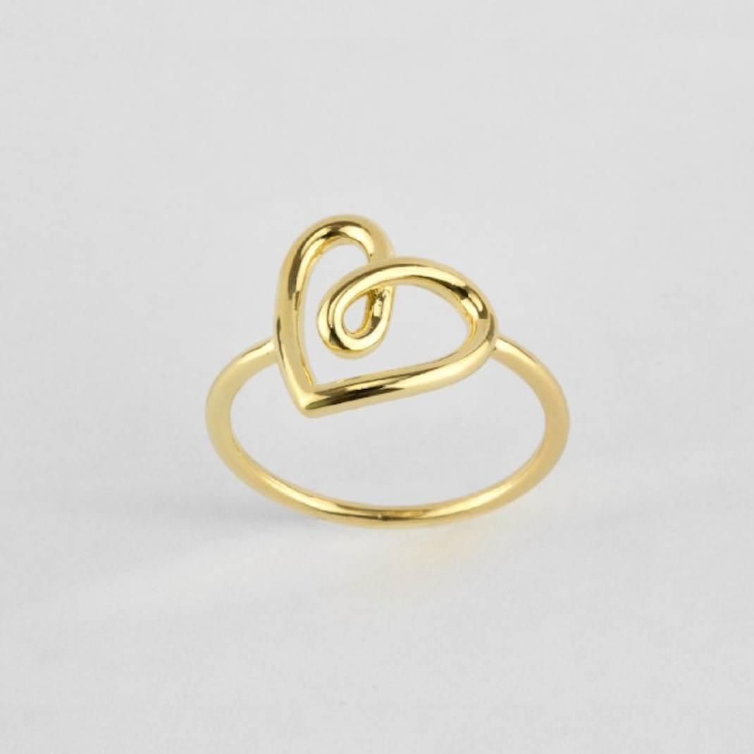 - Anillo de Plata de Ley con motivo de corazón chapado en oro