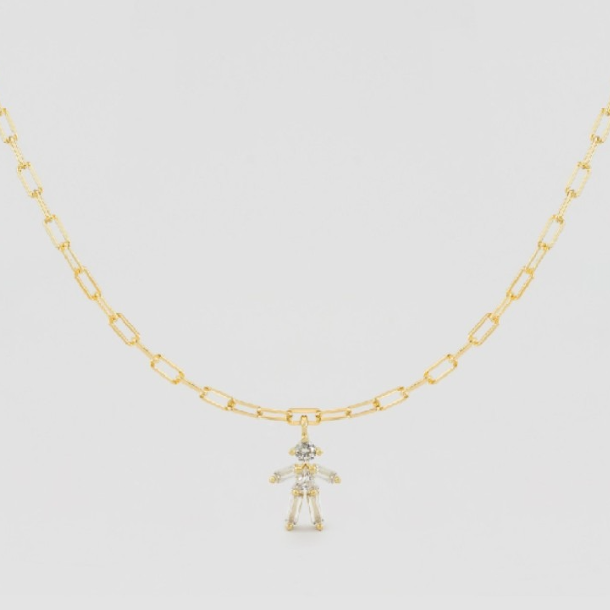 Collar de Plata de Ley y baño de Oro de 18K con motivo de niño en circonita blanca