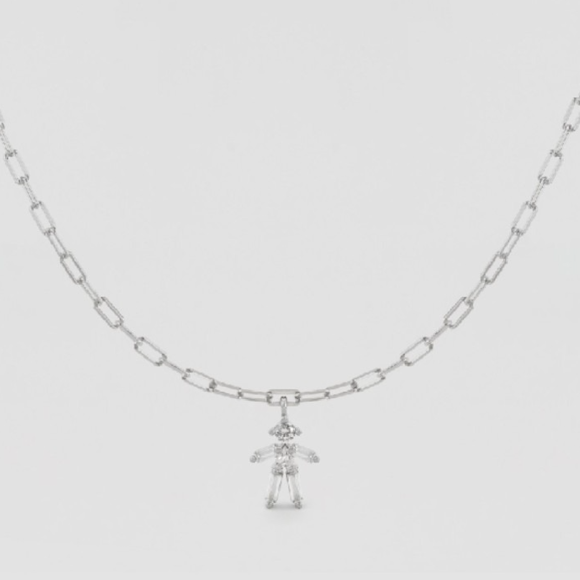 Collar de Plata de Ley Rodiado con motivo de niño en circonita blanca