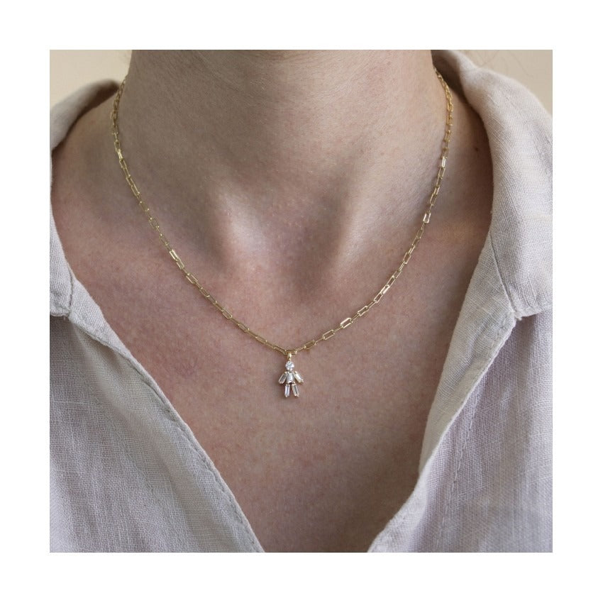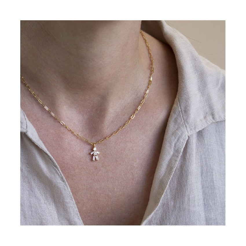 Collar de Plata de Ley y baño de Oro de 18K con motivo de niña en circonita blanca