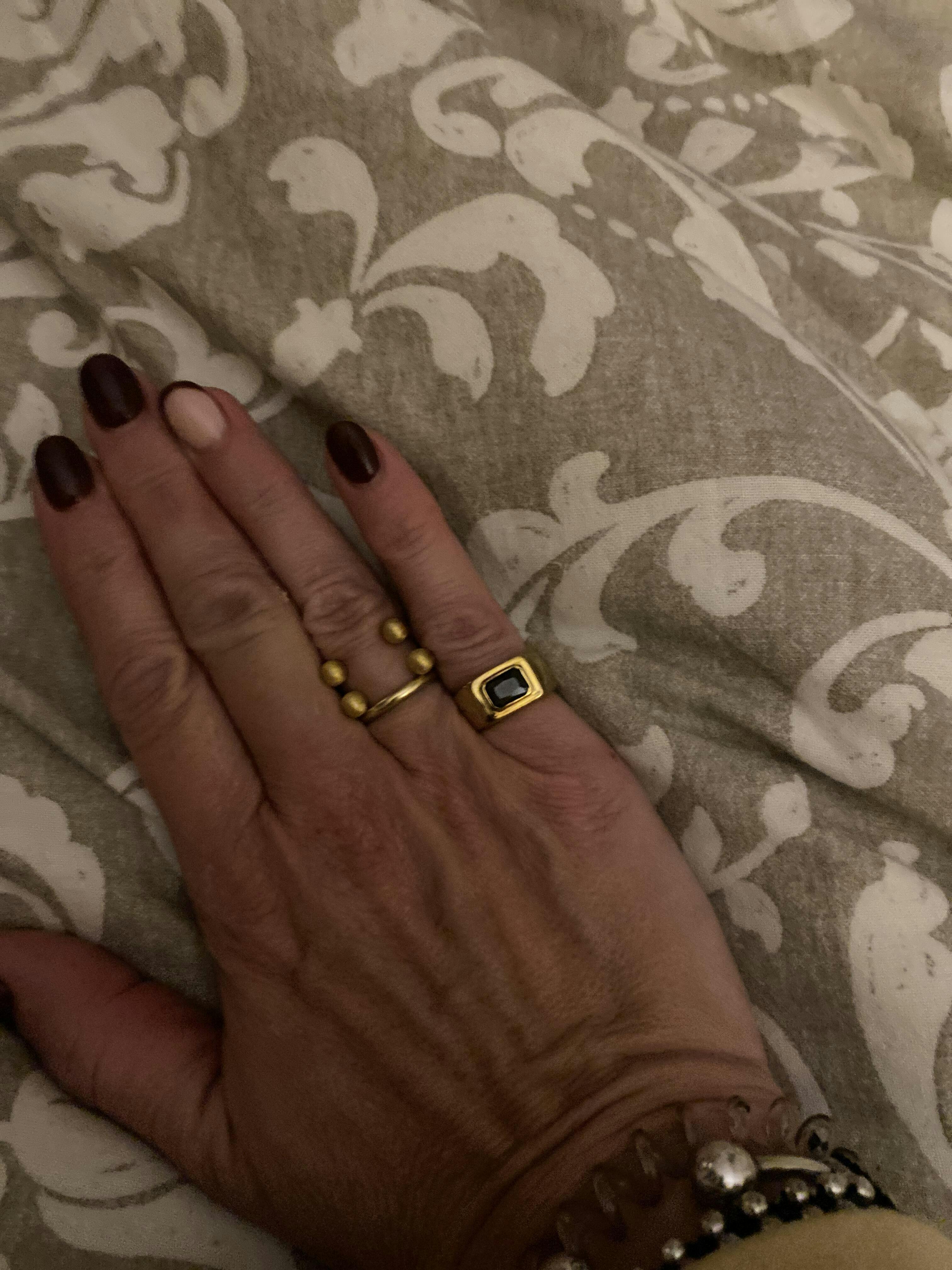 El Anillo Jenna es ideal para usar solo como pieza destacada o combinado con otros anillos más finos en un look apilado. El contraste entre el dorado y el negro hace que sea fácil de combinar con cualquier estilo, desde atuendos de día casuales hasta looks nocturnos más formales. Es el complemento perfecto para quienes buscan un toque de distinción.
