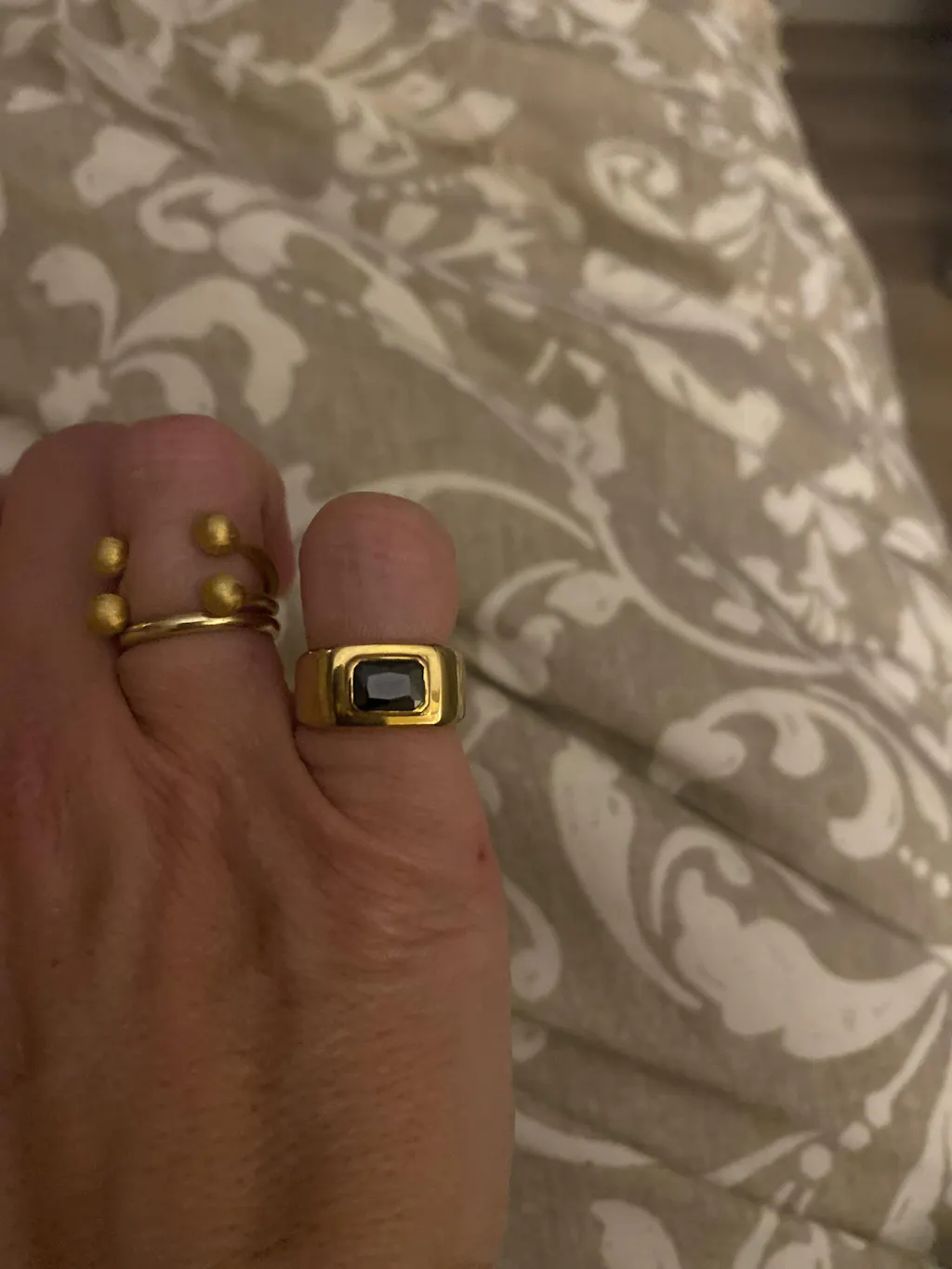 El Anillo Jenna es ideal para usar solo como pieza destacada o combinado con otros anillos más finos en un look apilado. El contraste entre el dorado y el negro hace que sea fácil de combinar con cualquier estilo, desde atuendos de día casuales hasta looks nocturnos más formales. Es el complemento perfecto para quienes buscan un toque de distinción.